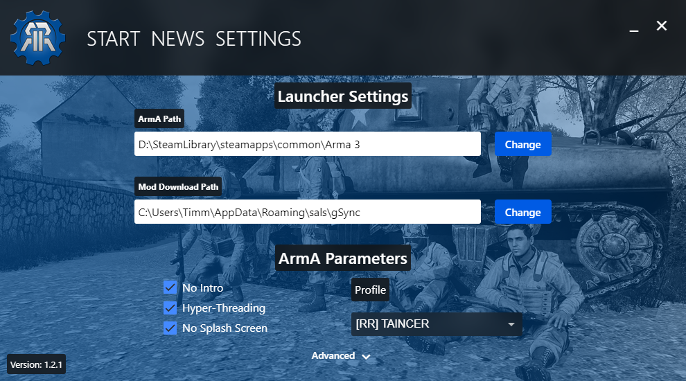 Clears the internal ArmA Mod and Image Cache of the Launcher and restarts it.